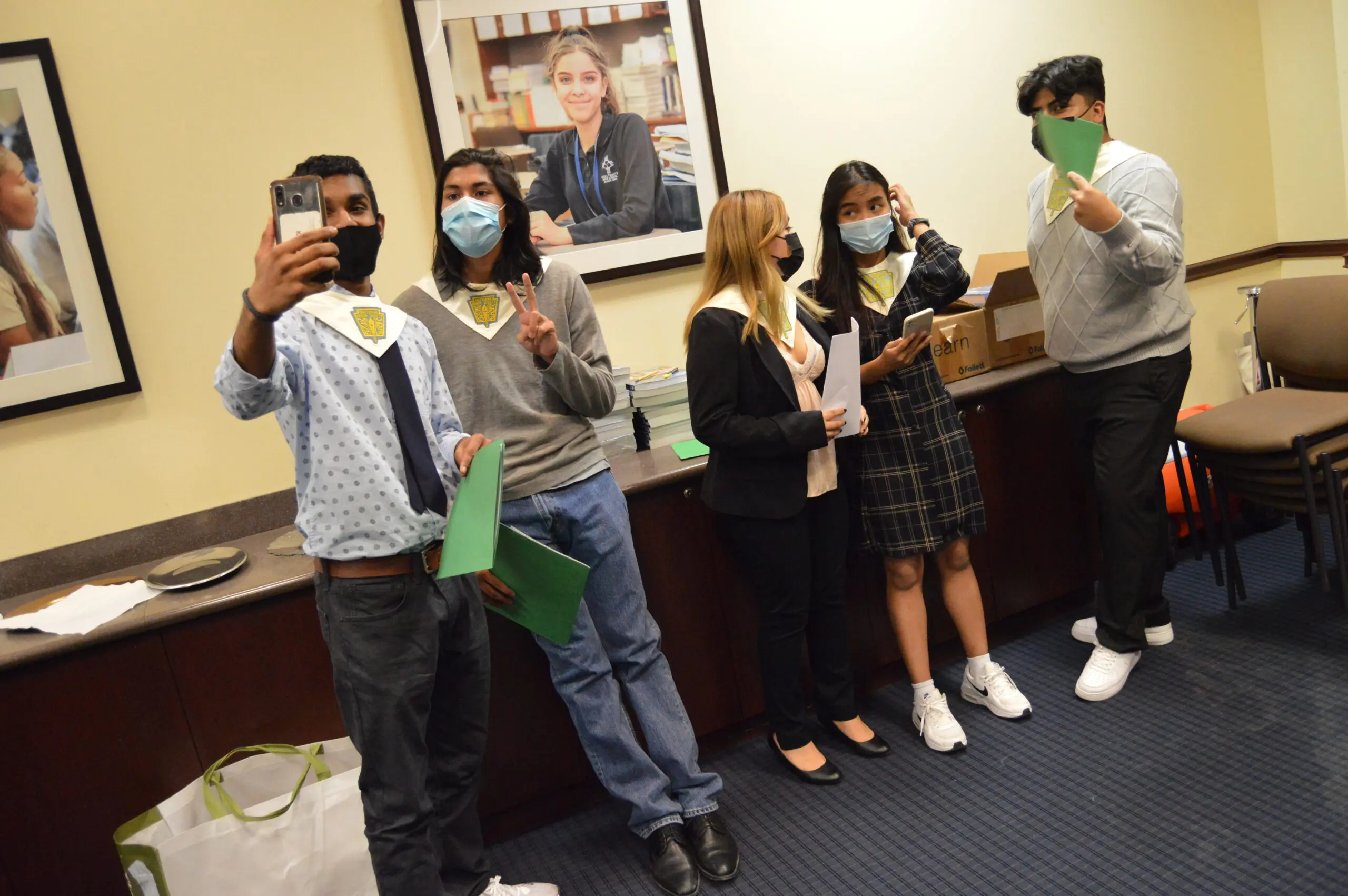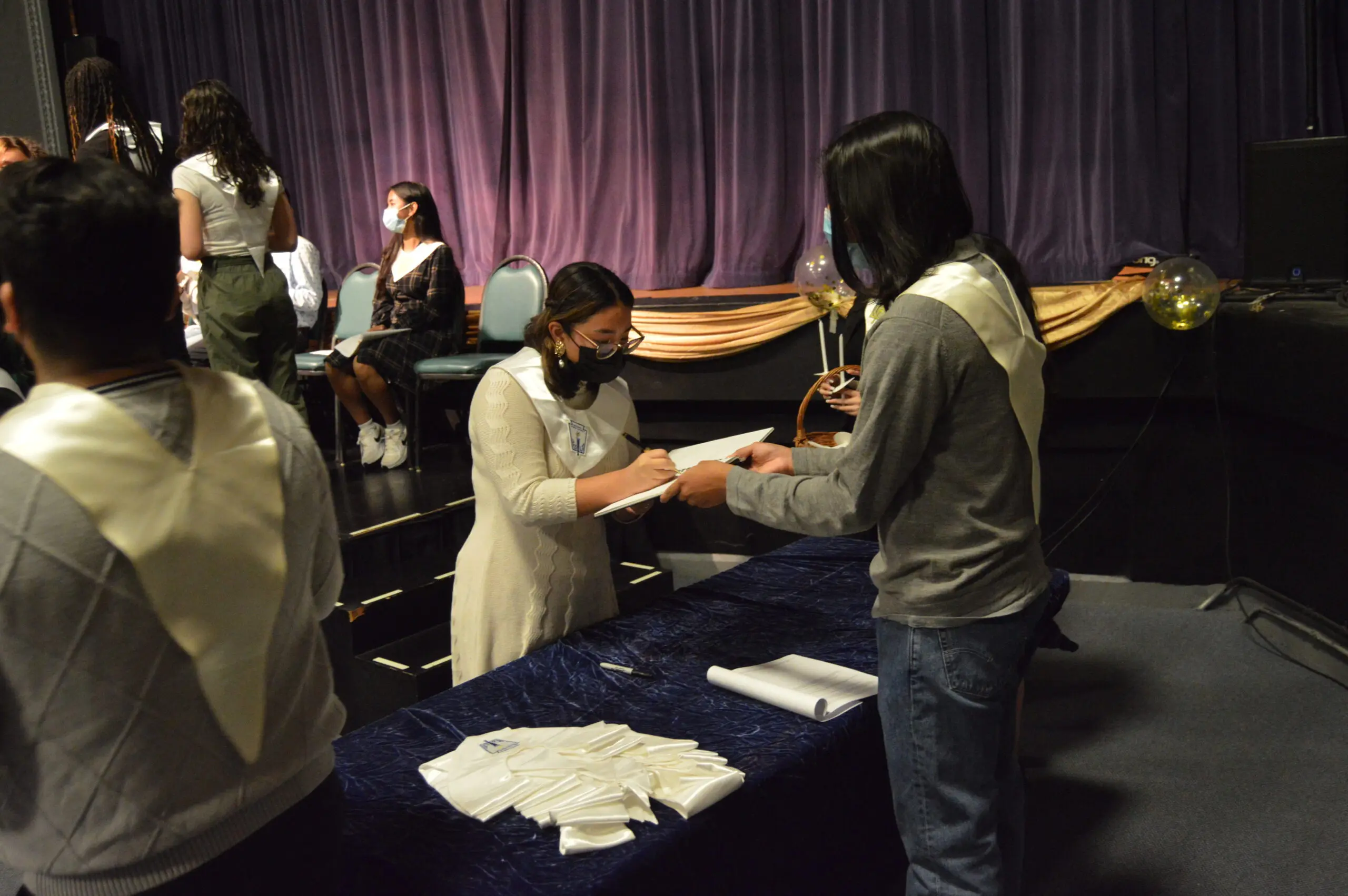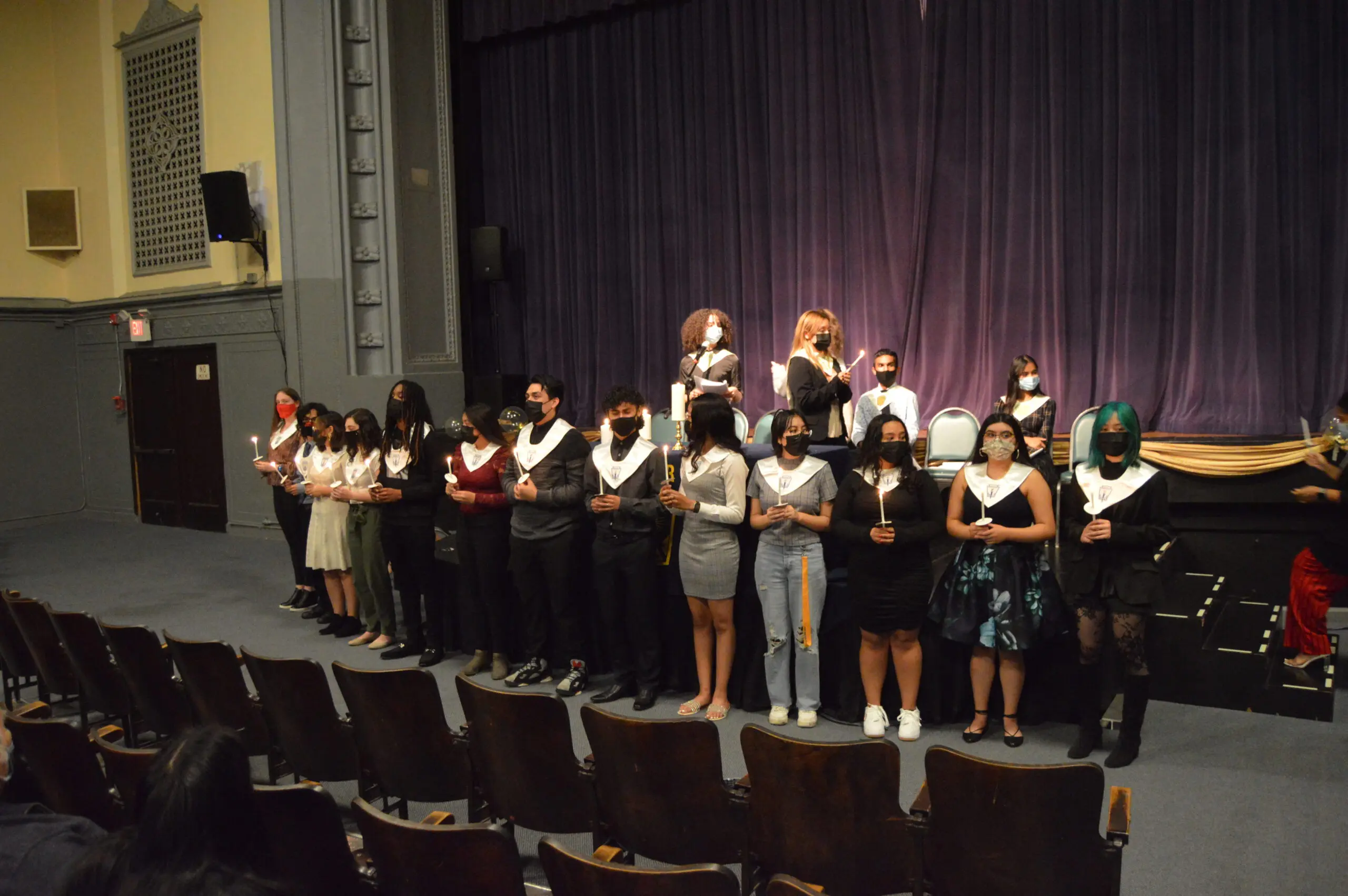 The ceremony was led by chapter president Eva Teruel ‘22 and her fellow members, who were inducted last year: Adrian Ayala ‘22, Lesly Gonzalez’ 22 (Secretary), Madelyn Jackson ‘22 (Vice President), Krishna ‘22 (Treasurer), Jason Mena ‘22, Yarile Ortiz ‘22, Elena Par ‘22, and Arieli Rico ‘22.