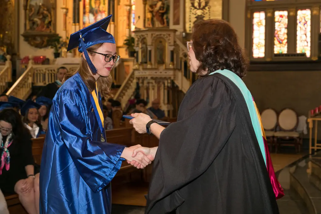 The 93 new graduates join the ranks of our distinguished HT alumni, now more than 8,000 strong. As Principal Marianne Lynch shared, we hope our newest alumni remember these four things wherever life may take them. “First, appreciate who you are and the gifts that God has given you. You each bring something special to the world. Be proud of who you are and make the most of the gifts you were given. Second, happiness is more important than material goods. If you focus all of your energy on wanting more, you never take the time to appreciate what you already have. Take the time to be grateful. Third, a mistake is often a gift, not a roadblock. It can help you rethink and refocus, finding a better way to achieve your goal, or even redefining the goal itself. Finally, remember that you have the power to transform the world.”
